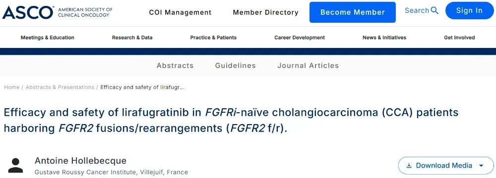 在2026年美国临床肿瘤学会(ASCO)胃肠癌研讨会上,一项名为ReFocus临床试验,详细展示了利拉富格拉替尼(lirafugratinib)这一新型不可逆且高度选择性的FGFR2抑制剂,在治疗携带FGFR2融合或重排的胆管癌患者中所展现出的显著抗肿瘤活性与持久疗效。